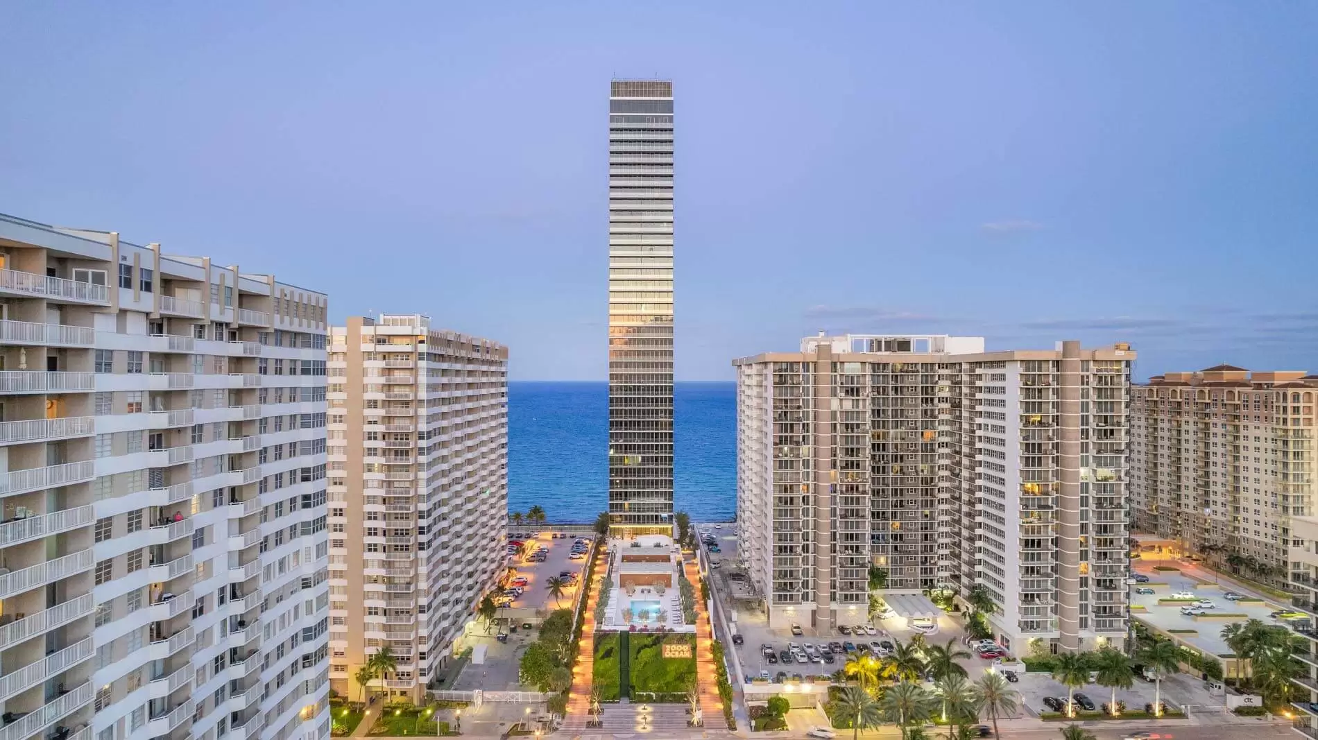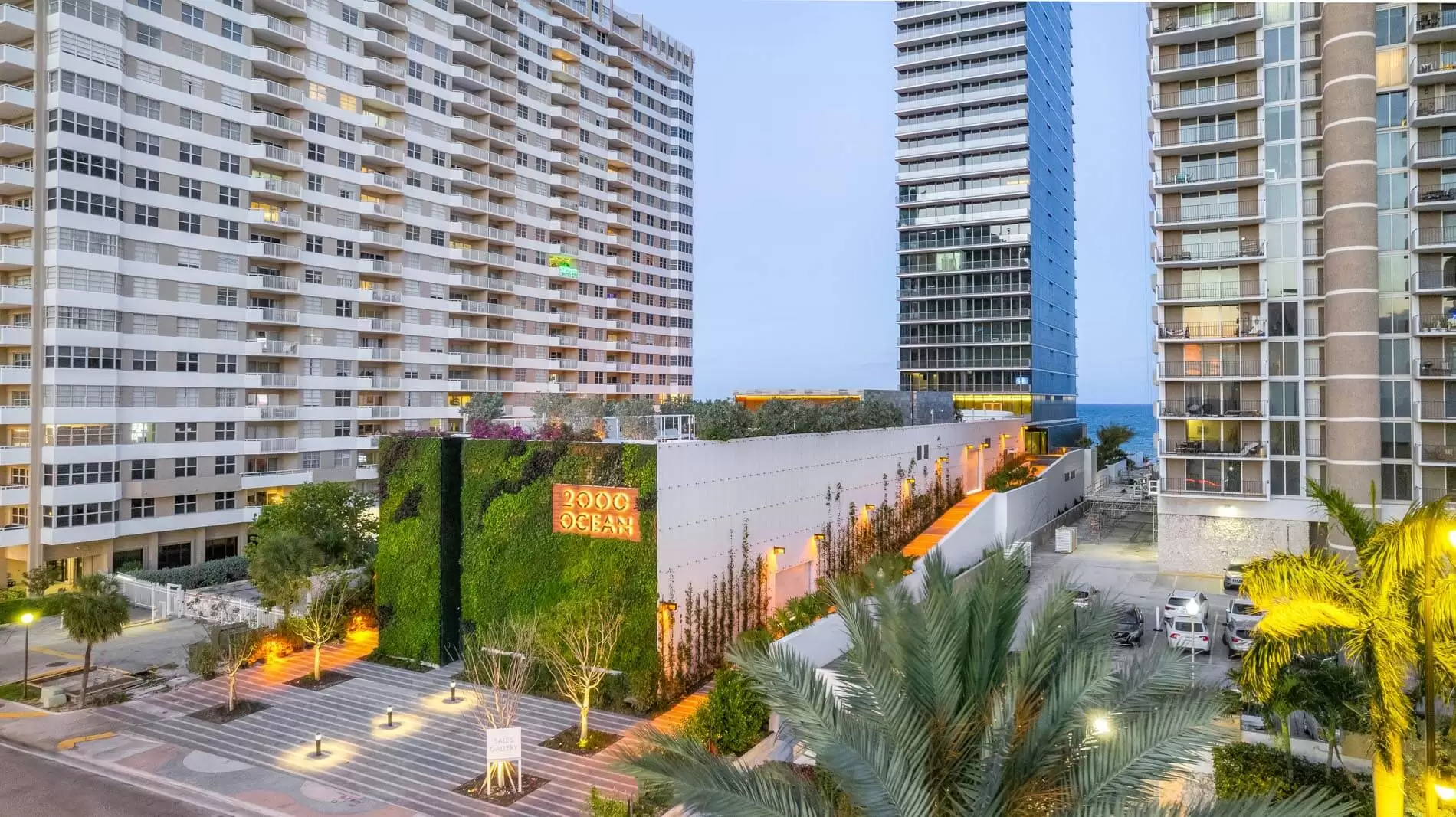 2000 Ocean se compone de residencias de medio piso, residencias penthouse de piso completo y una excepcional villa dúplex en el cielo con terraza de piscina privada. Cada residencia cuenta con una terraza privada con vista al mar hacia el este y una terraza privada con vista al jardín hacia el oeste, lo que brinda a los residentes la posibilidad de ver salir el sol sobre el Océano Atlántico y ponerse cada día sobre el Canal Intracostero, desde la comodidad de sus propios hogares.